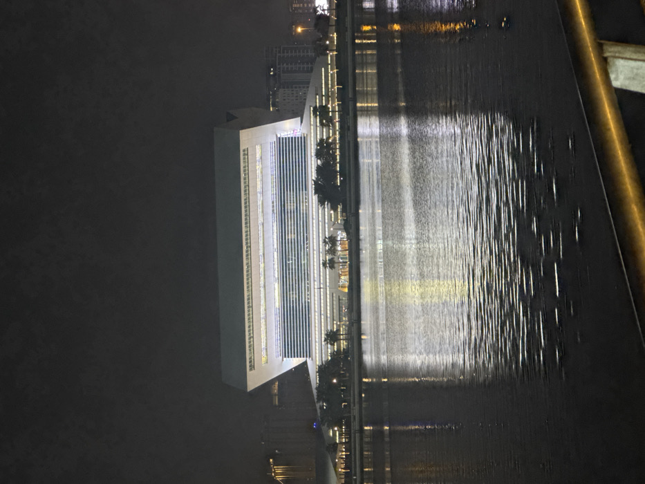 - "A tall, illuminated building with a white facade reflects in the dark water at night" by FM-GMxhS2, licensed under CC BY 4.0