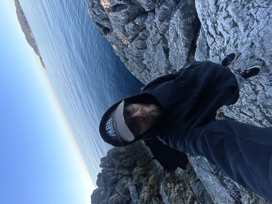 - "The image displays an adult male taking a selfie on a rocky coastal cliff in Pržno, Montenegro" by FM-oln9s2, licensed under CC BY 4.0