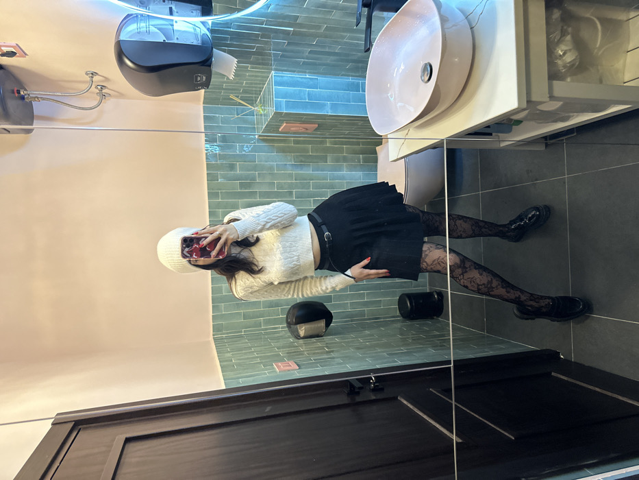 A mirror selfie captures a female in a modern restroom in Ulcinj - Ulqin, Montenegro