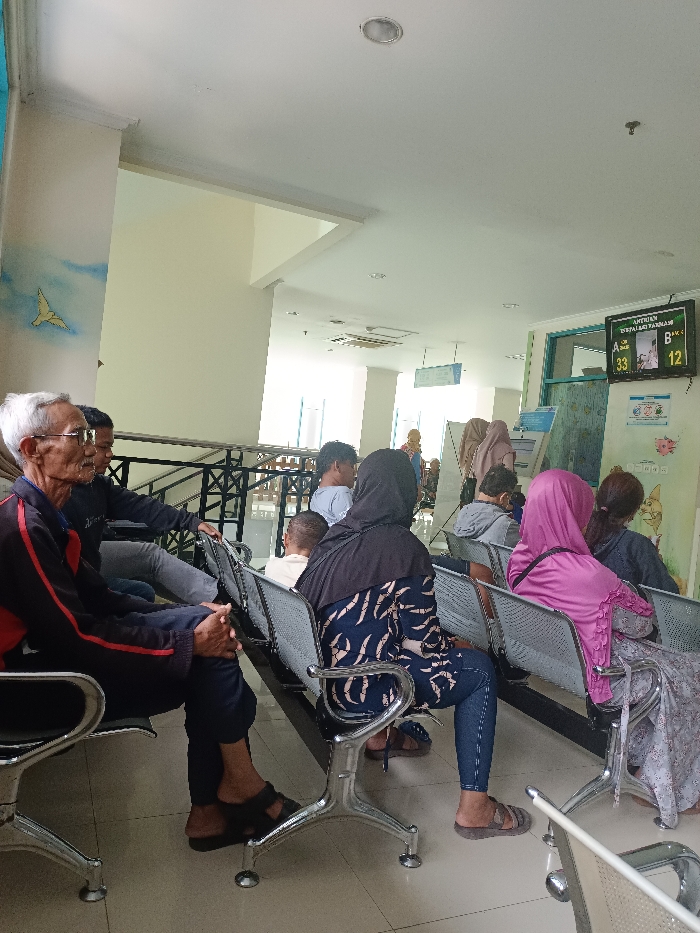 The image depicts an indoor waiting area, likely within a medical facility, in Margorejo, Indonesia