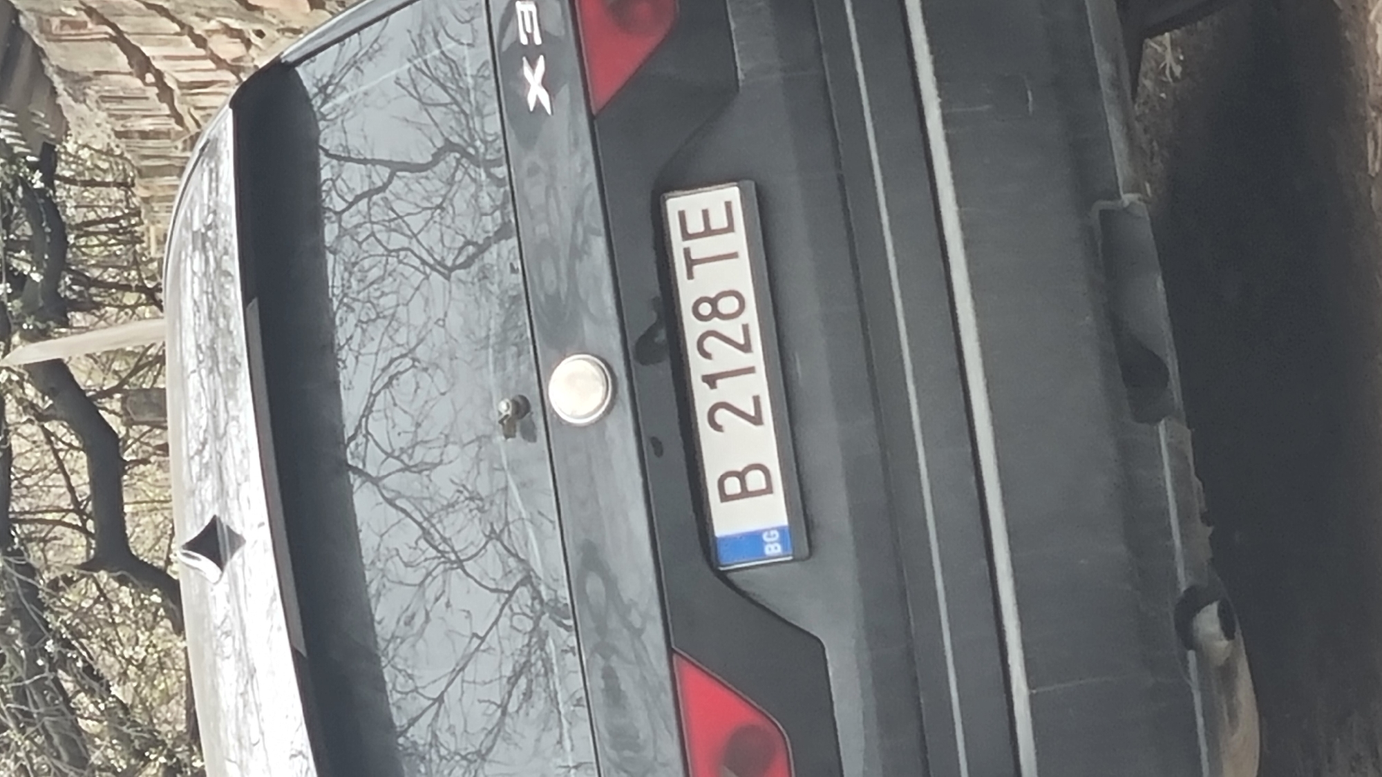 This image displays the rear of a dark gray BMW X3 SUV, situated in Dolni Chiflik, Bulgaria
