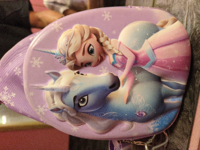 - "An ovoid-shaped, glitter-textured, light purple pouch or small bag is depicted, featuring a raised illustration of two characters from Disney's *Frozen*" by FM-M0G9X2, licensed under CC BY 4.0
