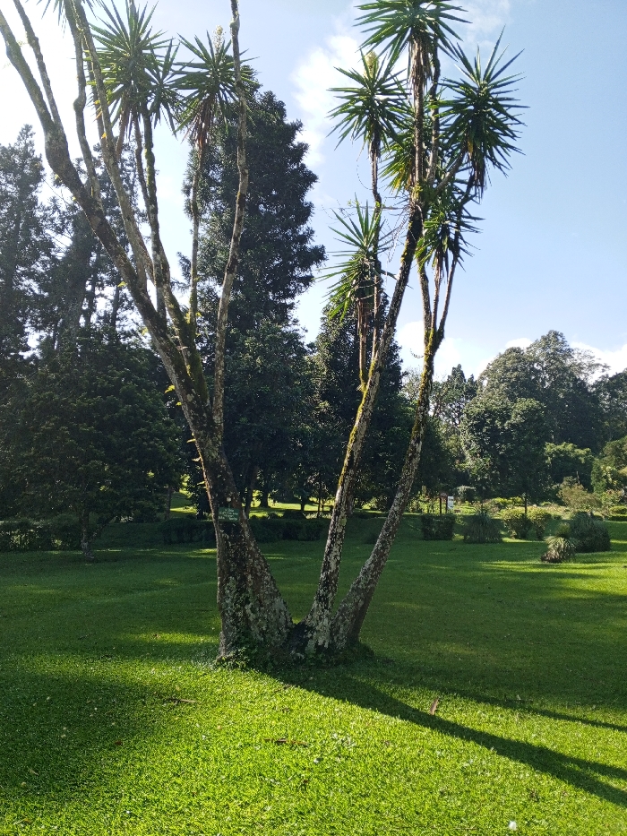 - "A sunny park scene showcases a unique tree with multiple trunks emerging from the base, topped with spiky leaves resembling palm fronds" by FM-hlSDi1, licensed under CC BY 4.0