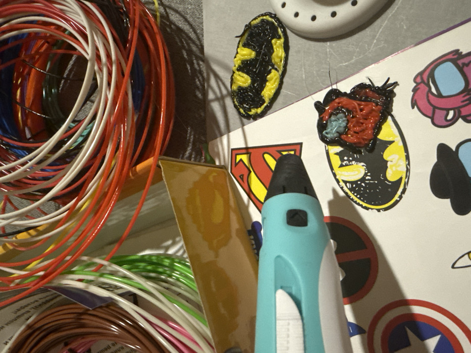 - "The image displays an indoor scene in Dmitrov, Russia, depicting a collection of 3D printing pen supplies and creations on a textured grey surface" by FM-VJm8n1, licensed under CC BY 4.0