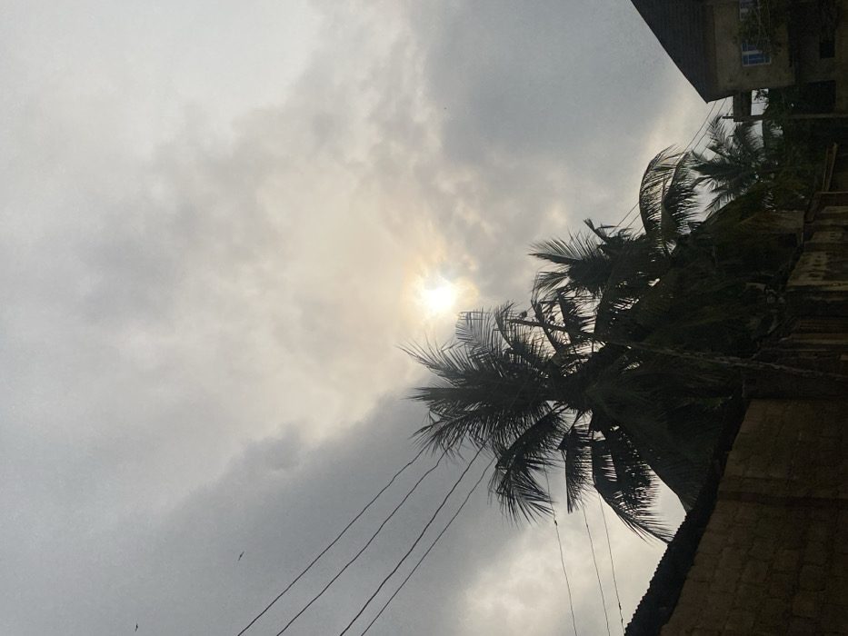 Overcast sky with the sun dimly visible through the clouds