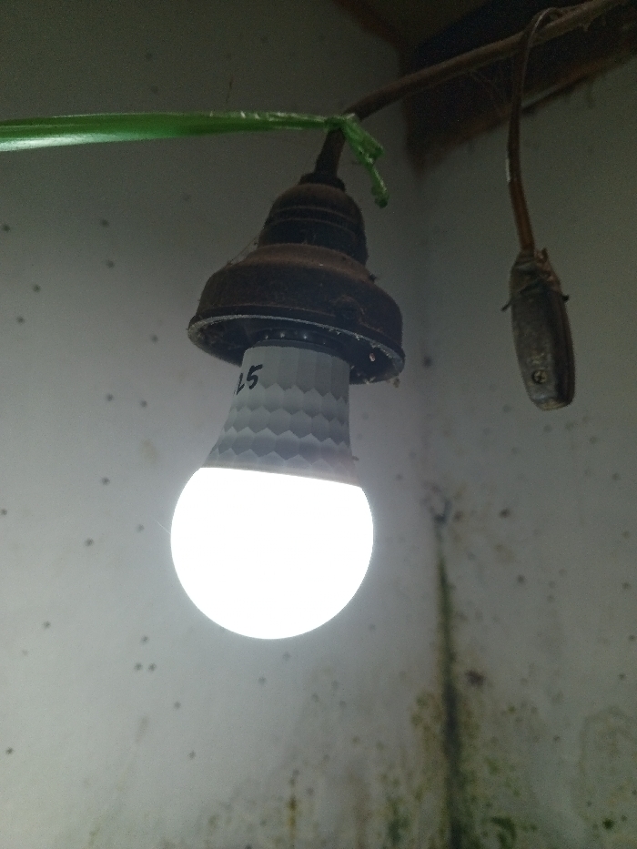 - "A lit LED bulb hangs from a dirty, aged fixture" by FM-1C8S12, licensed under CC BY 4.0