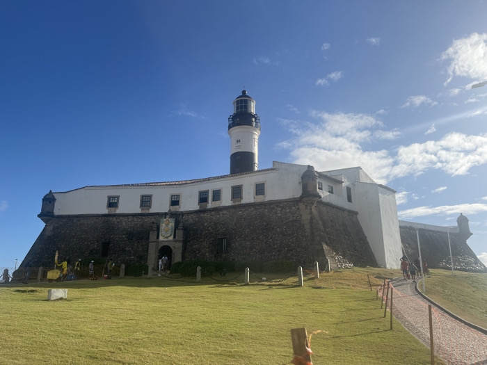 - "The image displays the Forte de Santo Antônio da Barra and the Farol da Barra (Barra Lighthouse) in Salvador, Bahia, Brazil, under a bright blue sky with scattered white cumulus clouds" by FM-21Qs12, licensed under CC BY 4.0