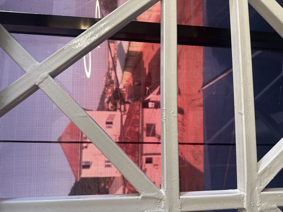 - "The image presents an exterior urban scene in Lokoja, Nigeria, viewed through a light gray painted metal security grid composed of an X-brace and horizontal bars, which exhibits minor surface wear" by FM-EO5mc2, licensed under CC BY 4.0