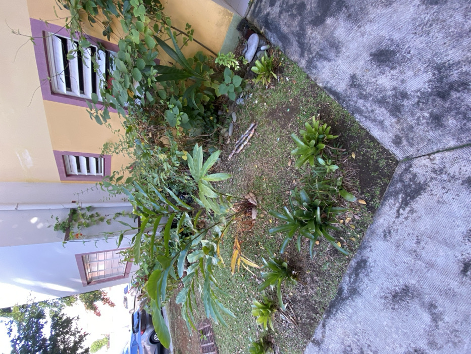 This image depicts an outdoor garden area situated alongside a building in Capesterre-Belle-Eau, France