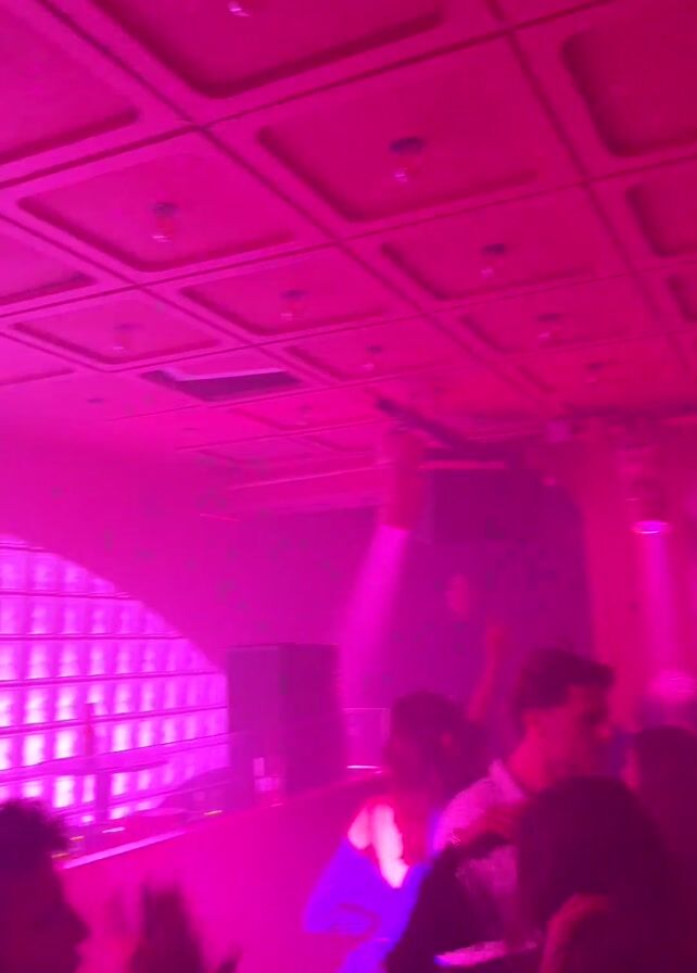 nightclub bathed in red and purple light