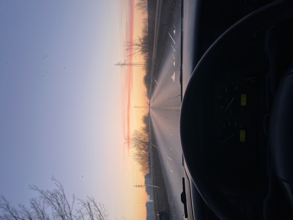 - "The image depicts a first-person perspective from the interior of a vehicle, facing forward on a paved road during either sunrise or sunset in Sofia, Bulgaria" by FM-ahmMq2, licensed under CC BY 4.0