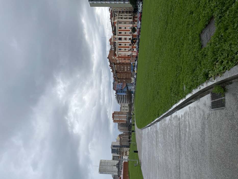 - "The image displays a wide public park under a uniformly overcast sky in Gijón, Spain, specifically the Parque de los Hermanos Castro, looking towards the city center" by FM-whkRu1, licensed under CC BY 4.0
