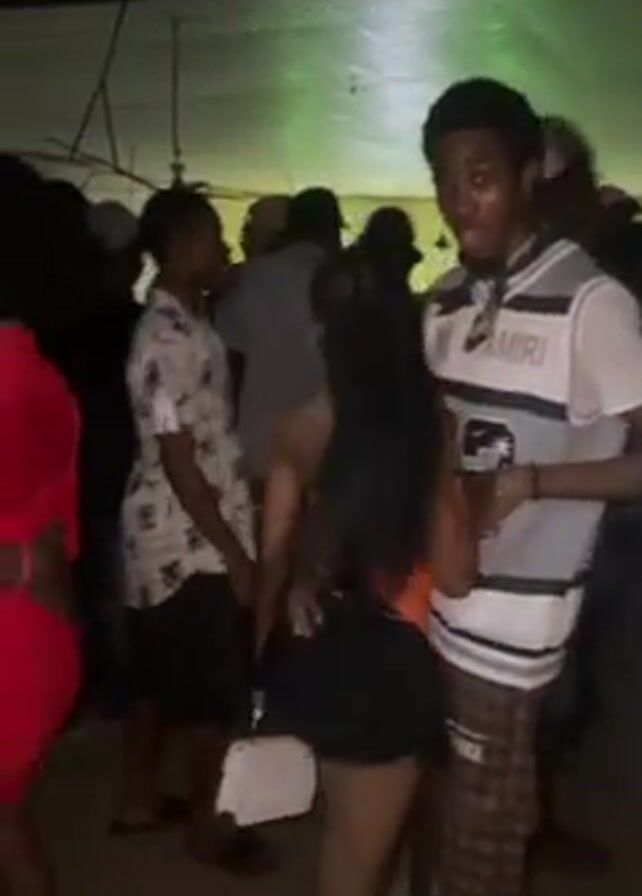 n indoor party. People are moving and dancing to music. The lighting changes from a dim white to bright orange and red. There are men and women of different skin tones. The men wear various casual outfits, including t-shirts and vests. One man wears a white vest with the word "AMIRI" on the back. The women are also dressed in casual outfits. In the beginning, a couple is dancing. Throughout the video, people are dancing in pairs and groups. The environment appears to be a large room with a low ceiling.