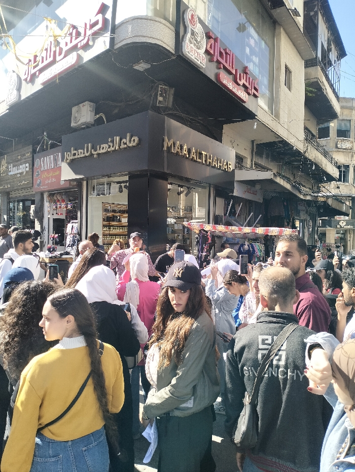 - "This image depicts a densely crowded street scene within a commercial district of Homs, Syria, specifically identified as Hamidiyah Street, near the intersection featuring "Ma' al-Dhahab Perfumes" (ماء الذهب للعطور) on the ground floor and "Quraish for Trade" (قريش للتجارة) on the upper floor of a prominent corner building" by FM-4RDN43, licensed under CC BY 4.0