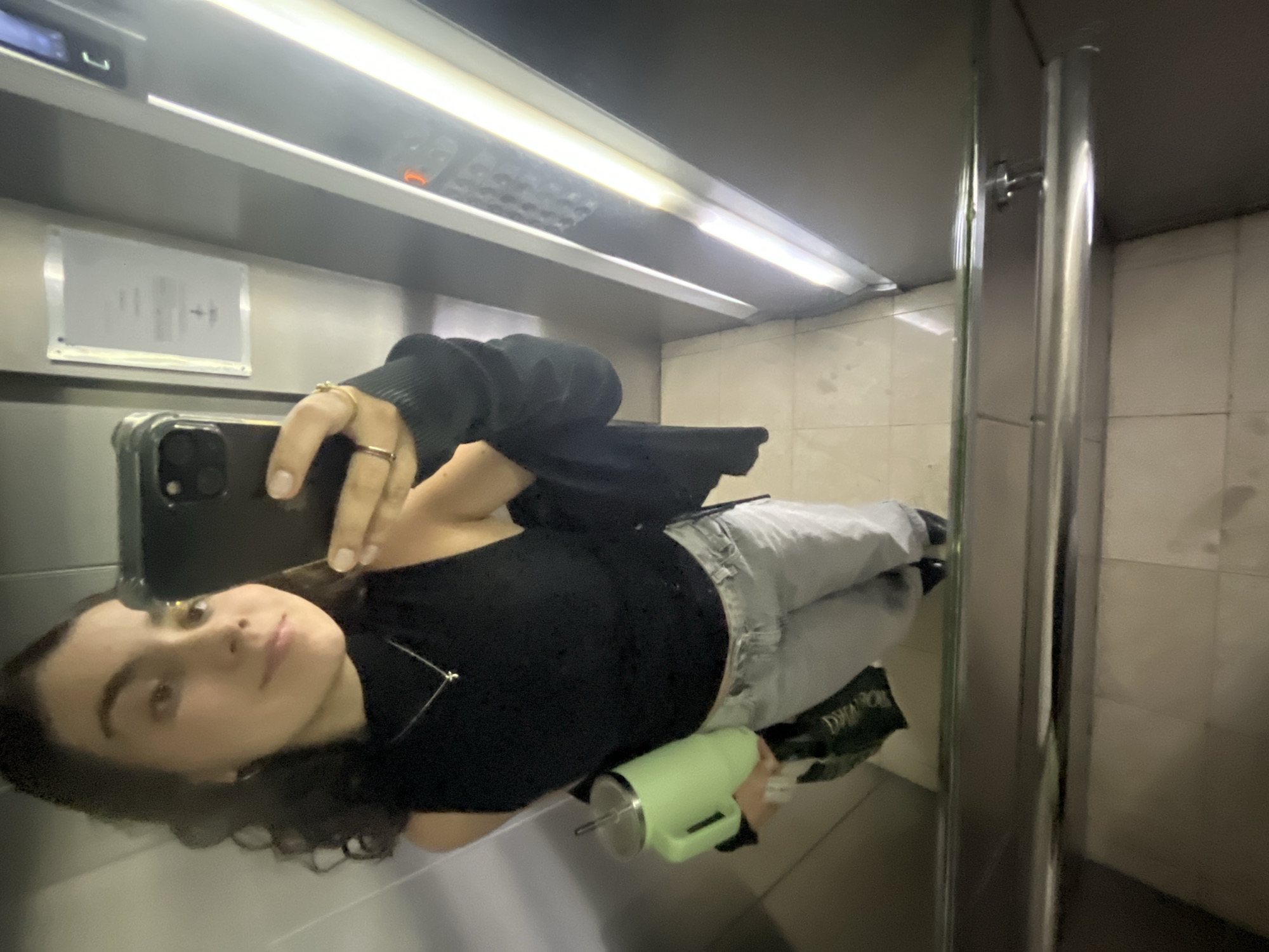 - "A single female subject with light skin and dark, curly hair, partially pulled back, is depicted taking a selfie in an elevator located in Mexico City, Mexico" by FM-3PMzr1, licensed under CC BY 4.0