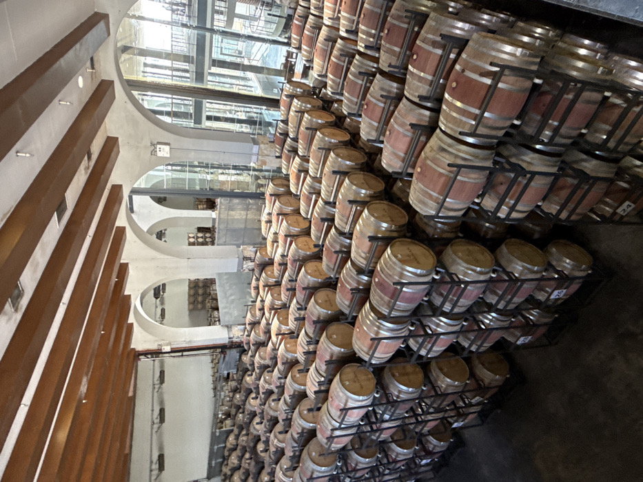 - "The image captures an expansive, well-lit barrel aging room at a winery in Hulda, Israel" by FM-XR4443, licensed under CC BY 4.0