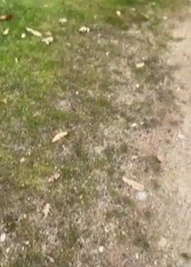 The video starts with a close-up of a hand holding a lit cigarette, against a background of ground covered with grass, leaves, and pebbles