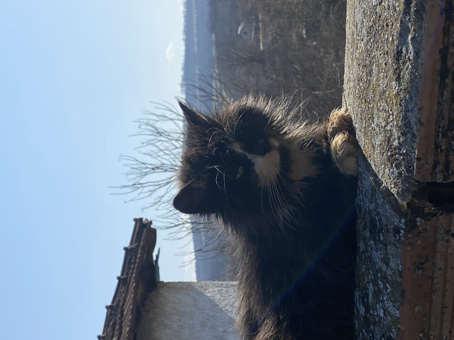 - "The image displays a black and white cat resting on a weathered, lichen-covered stone wall in Dobri dial, Bulgaria" by FM-PFEbq2, licensed under CC BY 4.0