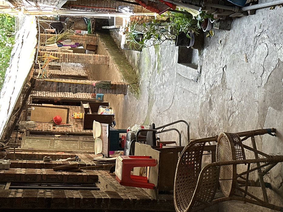 - "The image displays an outdoor, narrow residential alleyway or shared courtyard located between two structures of weathered red brick, consistent with a residential area in Shapingba District, China" by FM-K0Kp62, licensed under CC BY 4.0