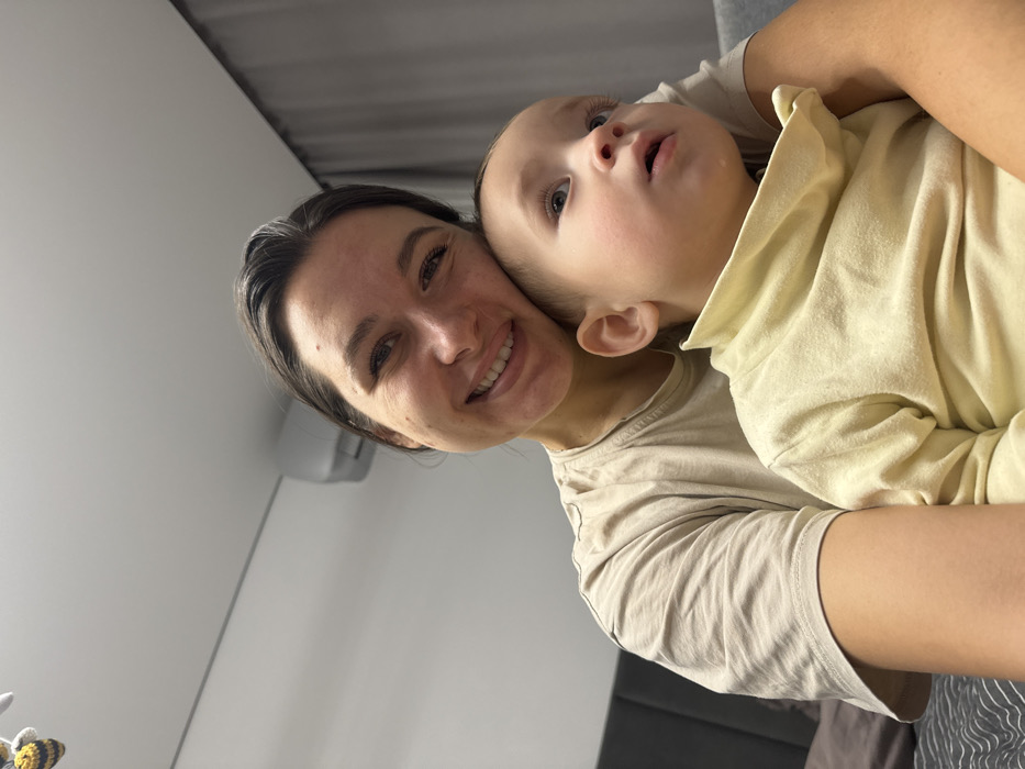 - "The image displays an adult female embracing a young child in an indoor residential setting, located in Грибовчанка Снт, Russia" by FM-j2hvk2, licensed under CC BY 4.0