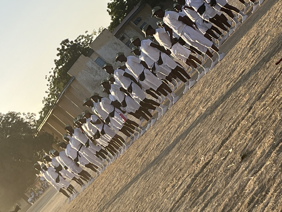 - "This image, captured in Maiduguri, Nigeria, displays approximately 25-30 individuals, predominantly young adults, standing in an angled, orderly formation on a dry, light brown, unpaved ground" by FM-xnj4q2, licensed under CC BY 4.0