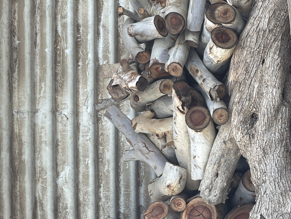 - "This image depicts a large, disorganized pile of cut wood logs and branches against a corrugated metal wall, located in the Eshkol Regional Council, Israel" by FM-grnl23, licensed under CC BY 4.0