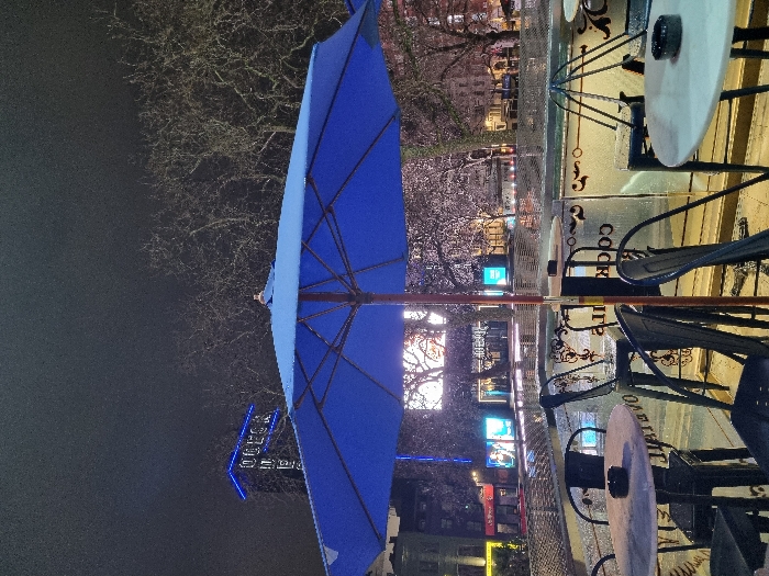 - "The scene depicts an outdoor patio area at night in Leicester Square, London, United Kingdom" by FM-8F8Xp1, licensed under CC BY 4.0