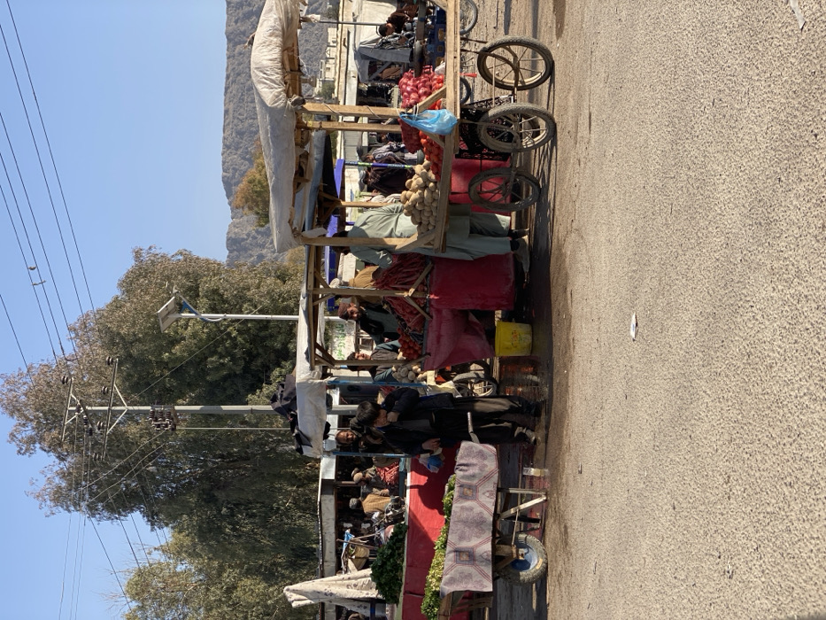 - "The image displays an outdoor market scene in کوکران, Afghanistan, under a clear blue sky, with distinct mountains visible in the background" by FM-B5wmg2, licensed under CC BY 4.0