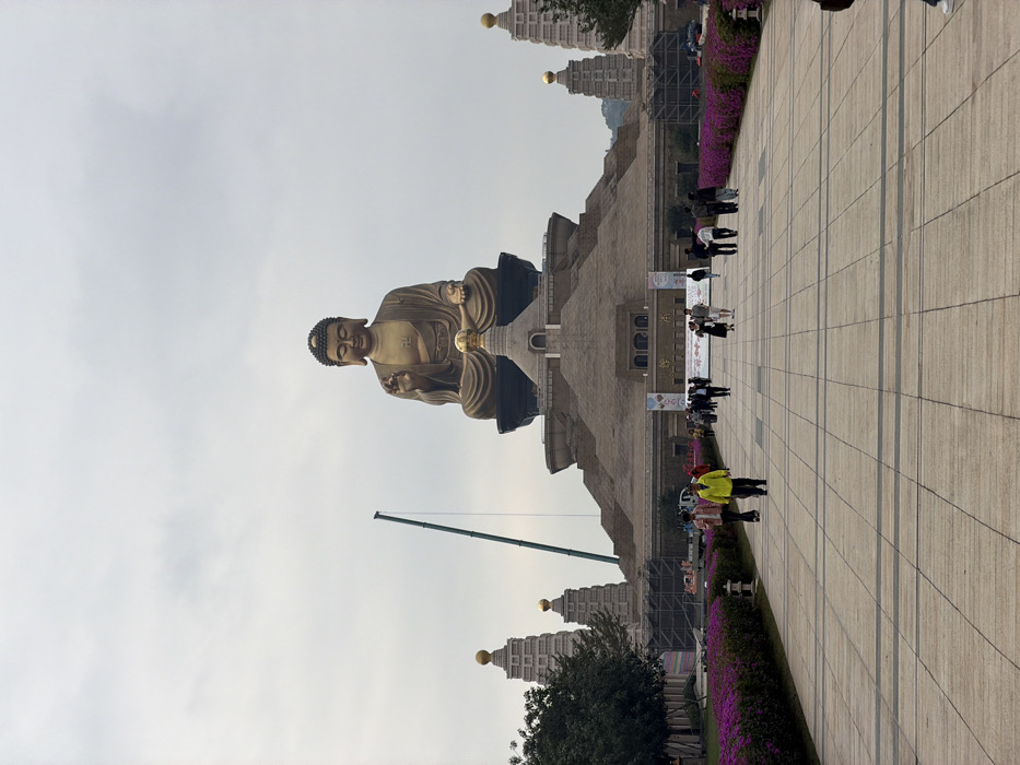 - "A massive golden Buddha statue dominates the left side of the image, set against a cloudy sky" by FM-1neqH3, licensed under CC BY 4.0