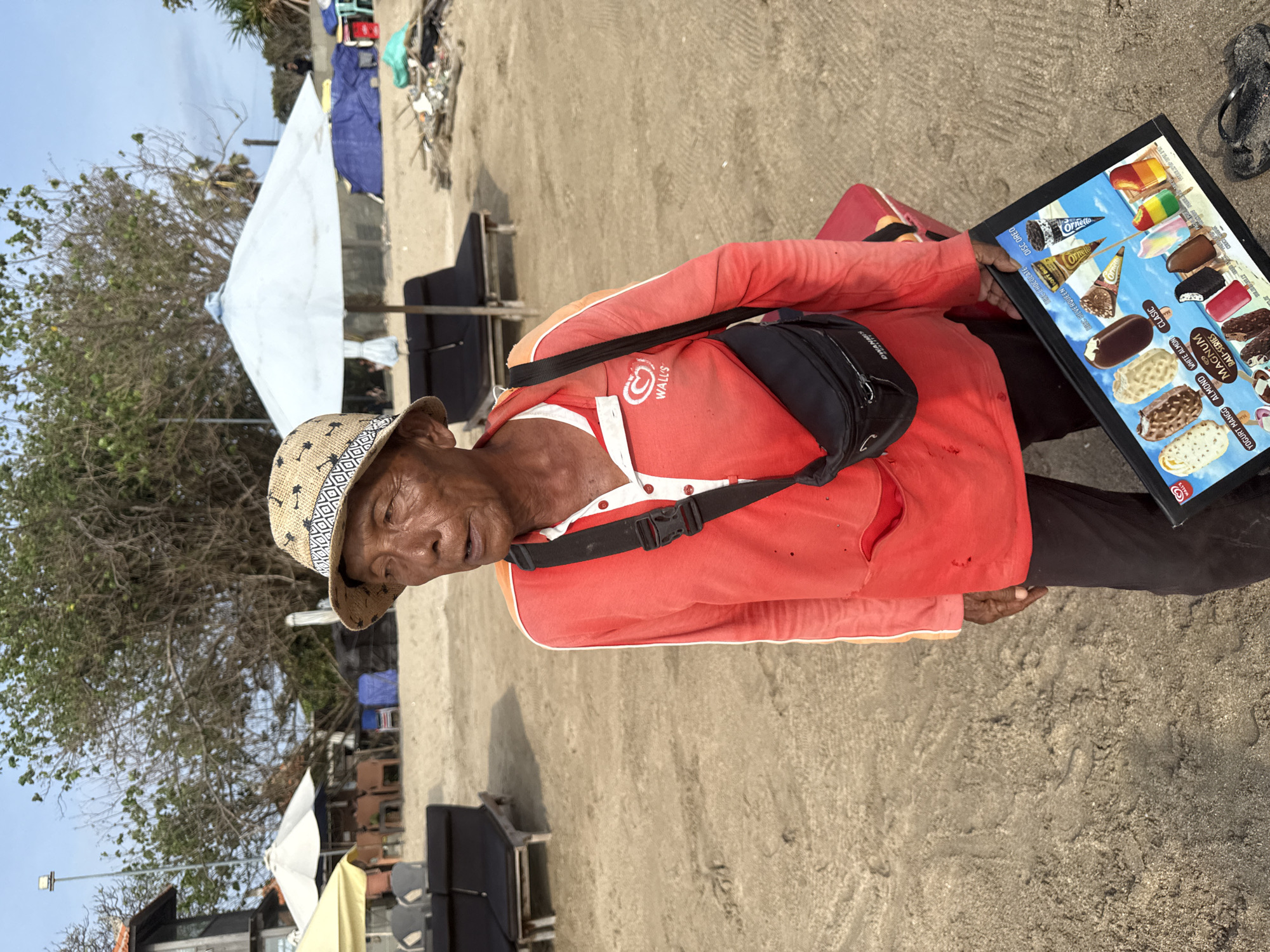 - "An elderly individual, appearing male, stands on a sandy beach at Kuta, Indonesia" by FM-Ppxti1, licensed under CC BY 4.0