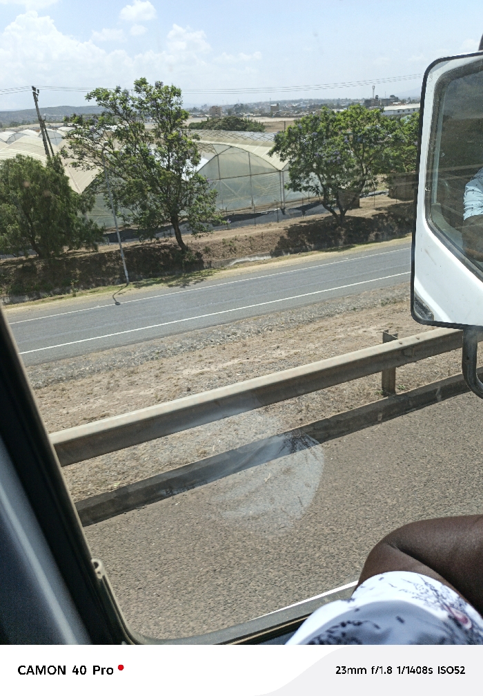 The image presents a daytime exterior view from within a vehicle, capturing a landscape in Viwandani ward, Kenya