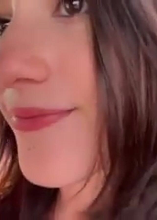 A woman with brown hair sits in the passenger seat of a car, looking directly at the camera