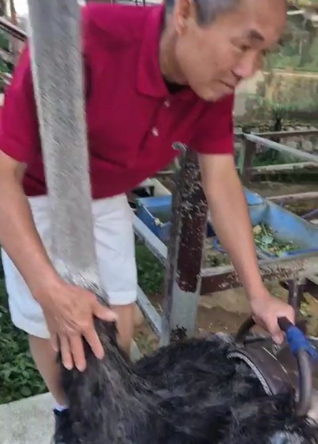 - ". The video shows a man interacting with an ostrich. In the first shot, a man in a red shirt and white shorts is standing next to a fence, petting the neck of an ostrich. The second shot shows a close-up of someone using a brush to groom the back of an ostrich. The third shot shows a man in a red shirt walking toward a fence. The fourth and fifth shots show two ostriches in an outdoor enclosure surrounded by trees." by FM-vOprn2, licensed under CC BY 4.0