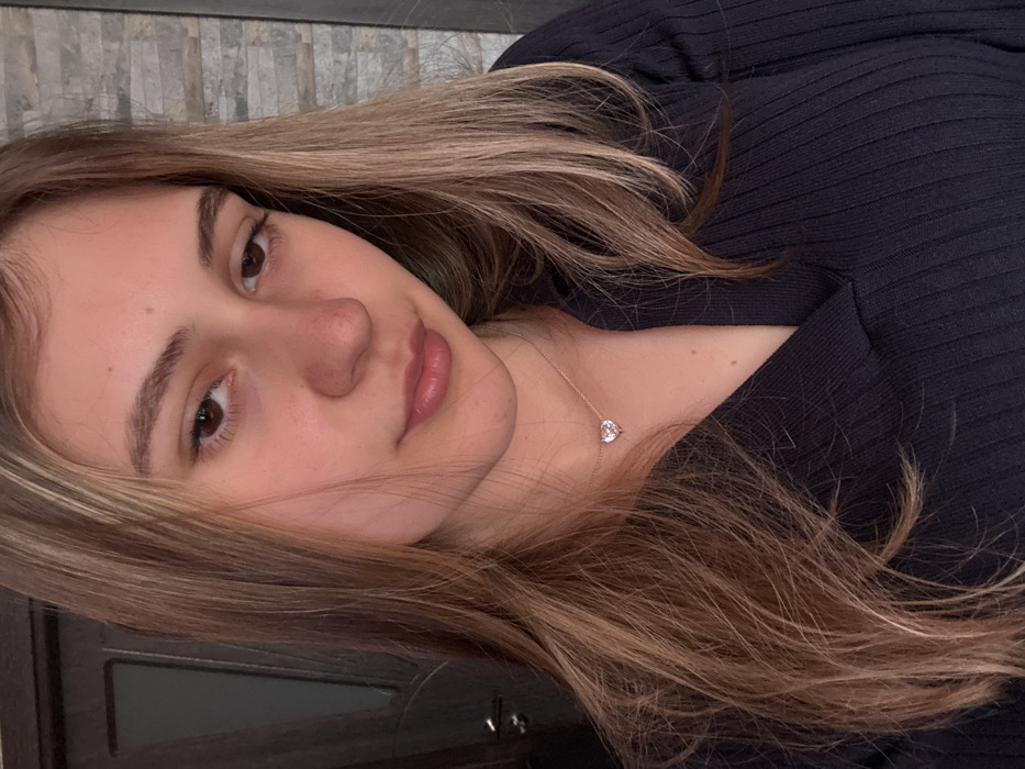 A young female subject is depicted in a close-up, self-portrait style image