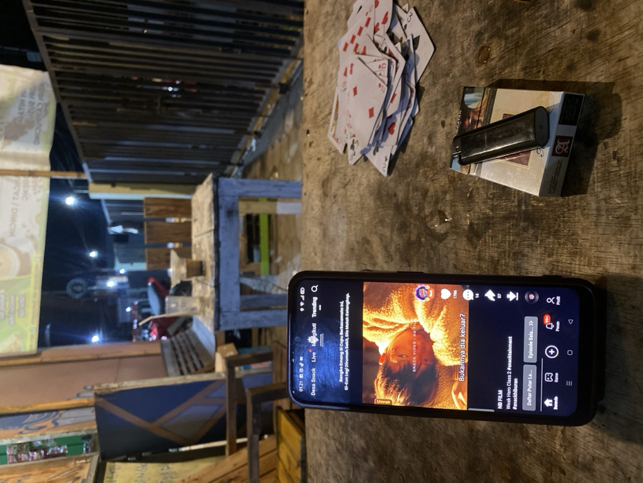 - "The image depicts a nighttime scene on a weathered wooden table at an outdoor establishment in Kecamatan Pati, Indonesia" by FM-QaAD42, licensed under CC BY 4.0