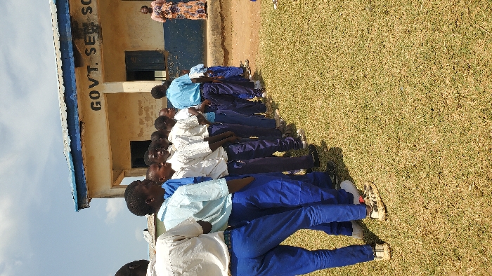 The image depicts an outdoor scene at a Government Secondary School in Akwanga, Nigeria