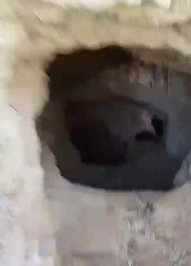 A video shows the entrance to a cave