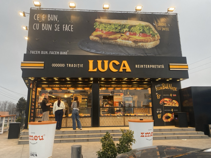 - "The image displays the exterior of a LUCA establishment in Agigea, Romania, under an overcast sky" by FM-C8pC53, licensed under CC BY 4.0