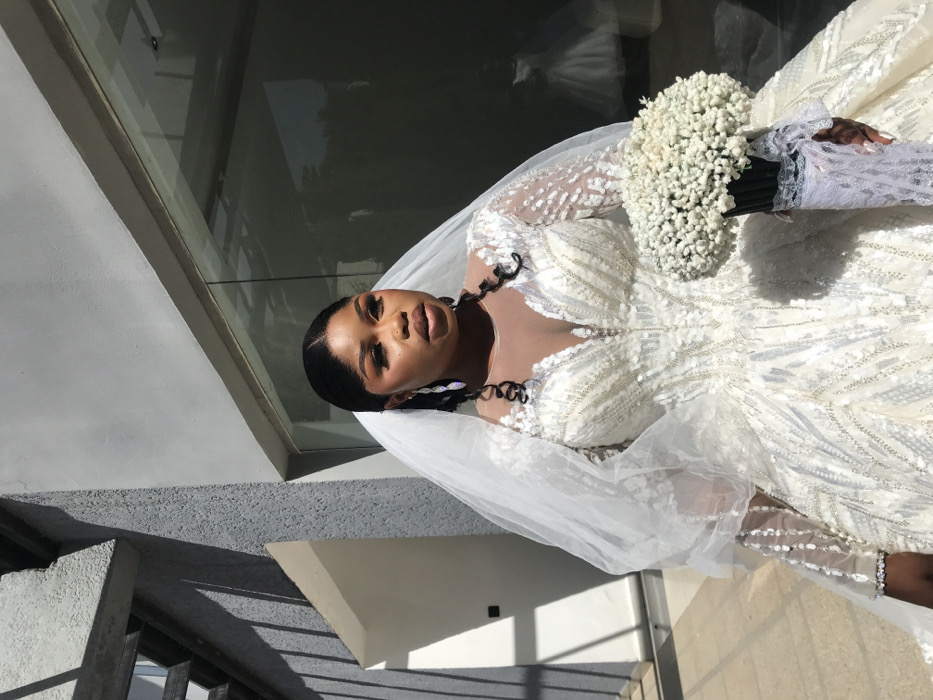 A portrait captured outdoors in Jos, Nigeria, depicts a woman dressed as a bride, illuminated by bright sunlight