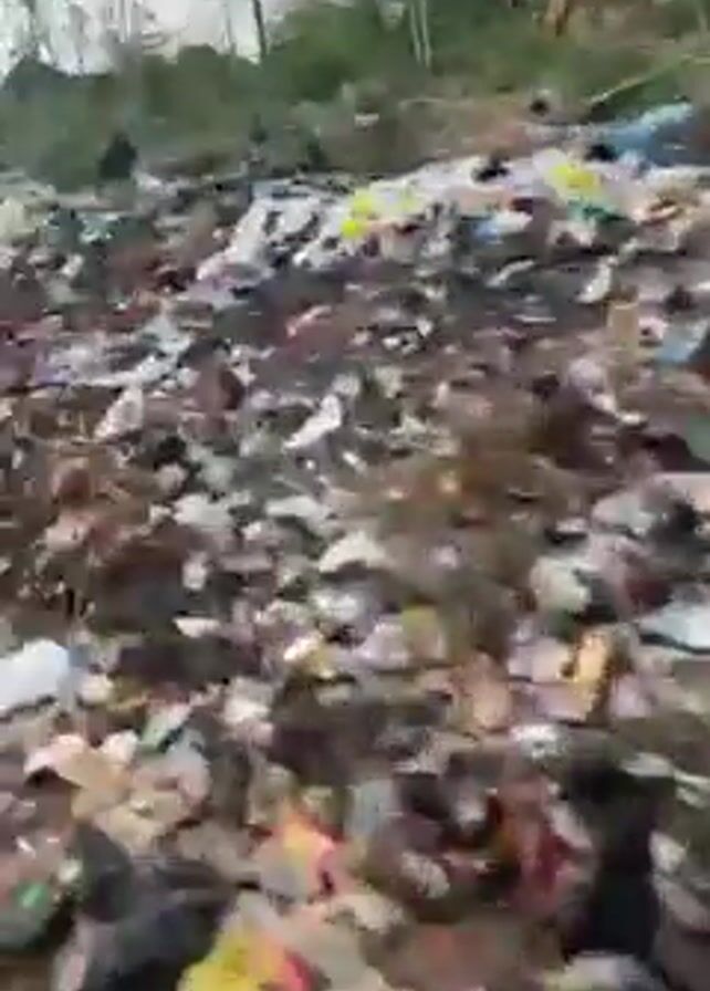 The video depicts an expansive area heavily littered with trash