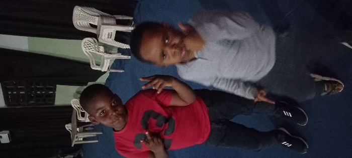 The image captures two young Black males standing indoors in Aba, Nigeria