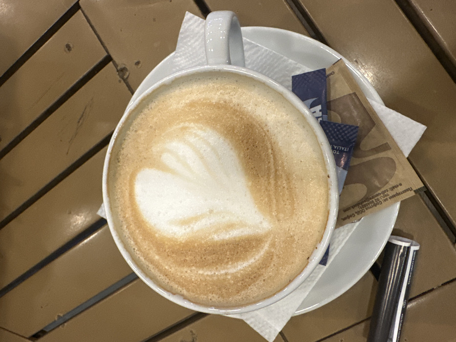 - "A white ceramic cup containing a cappuccino with a white heart-shaped latte art design is centrally positioned on a matching white saucer" by FM-yuOIE3, licensed under CC BY 4.0