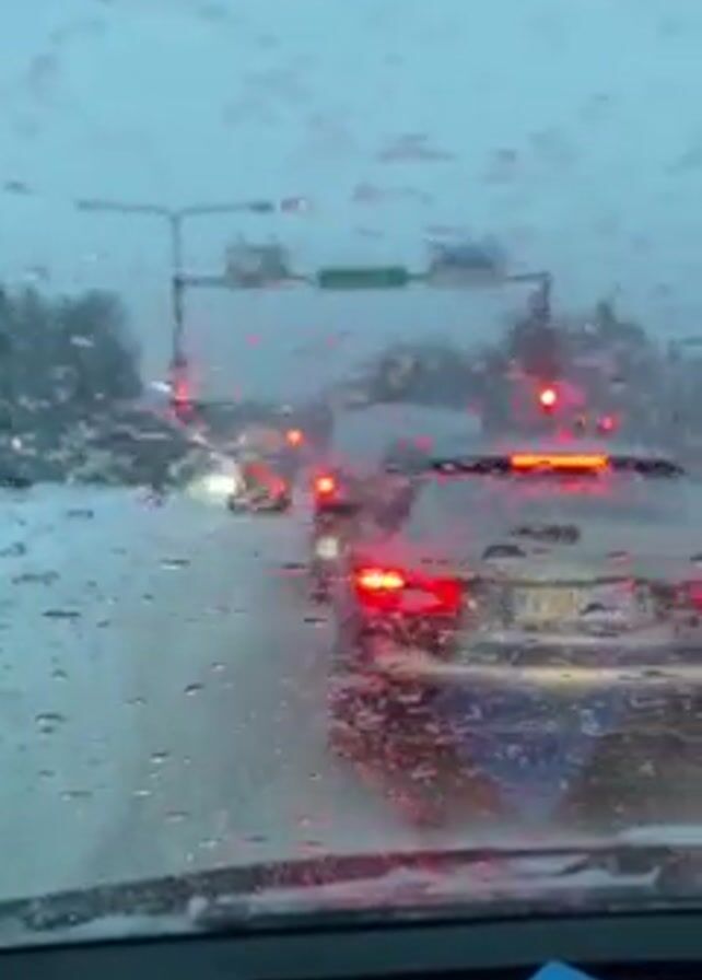 view from inside a car driving in snowy weather