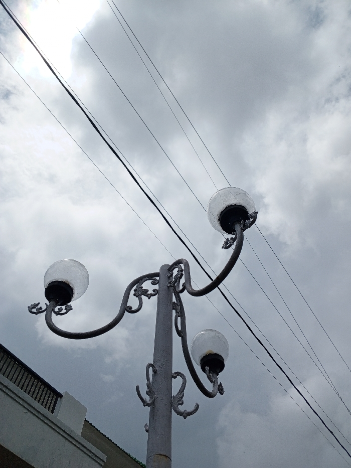 - "The scene is an upward view of a three-lamp ornamental street light pole in Calbayog, Philippines, against an overcast sky" by FM-9Fzzt2, licensed under CC BY 4.0