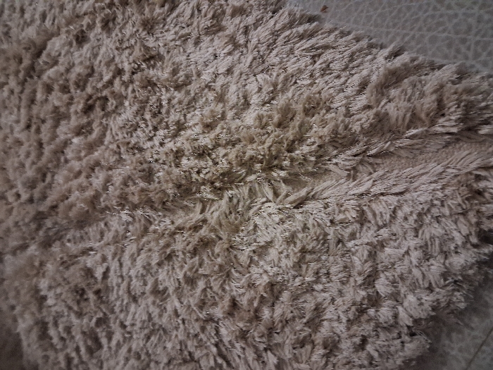 - "A close-up image shows a beige shag rug with long, fluffy fibers densely packed together" by FM-IiHJp1, licensed under CC BY 4.0