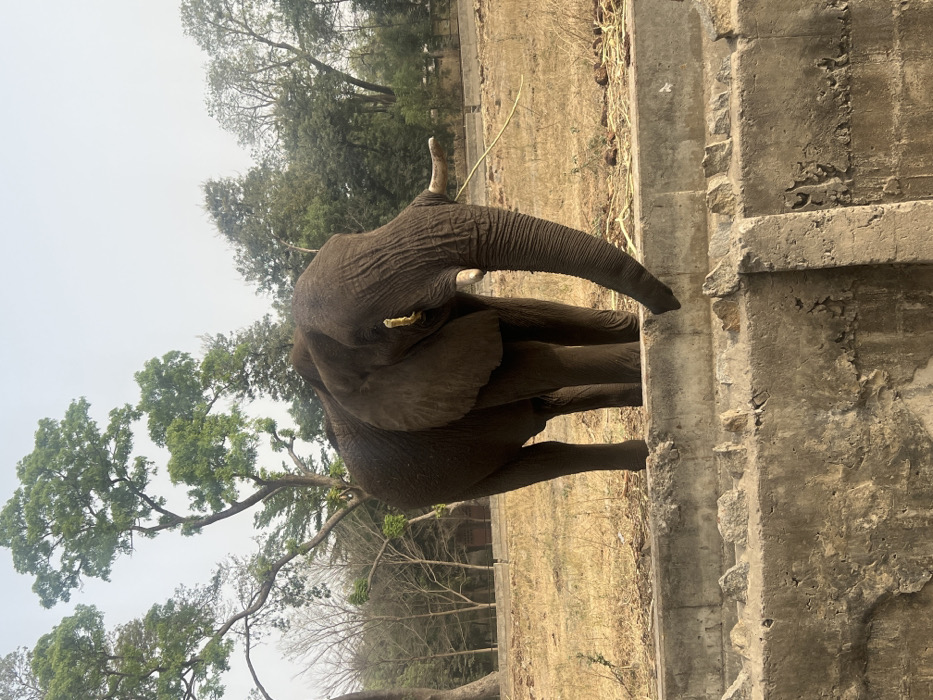 - "An elephant is positioned near a concrete barrier, its trunk resting on the surface" by FM-uf2dO2, licensed under CC BY 4.0