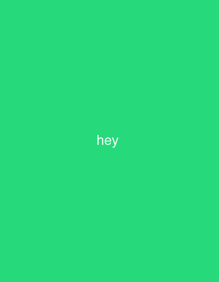 A digital image features the word "hey" in white text, centered horizontally and vertically on a solid green background