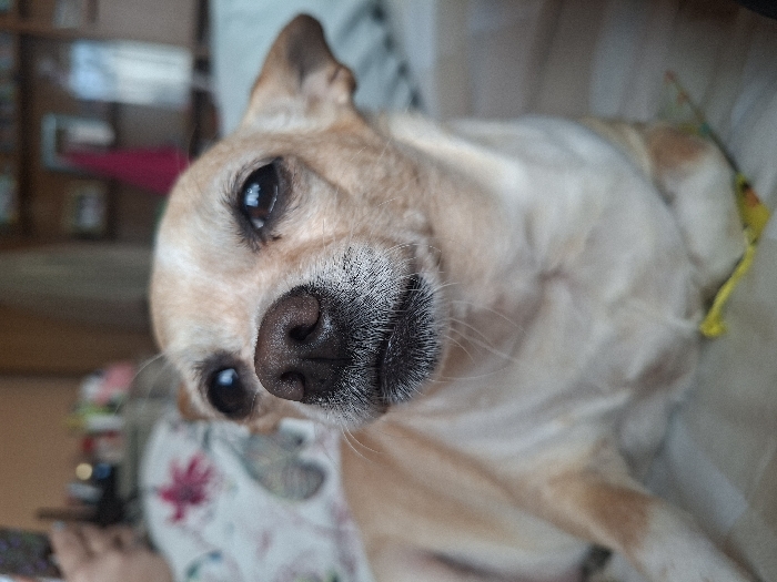 - "A tan-colored Chihuahua-type dog is depicted in a close-up, slightly low-angle shot, situated indoors in Isperih, Bulgaria" by FM-YQydj1, licensed under CC BY 4.0