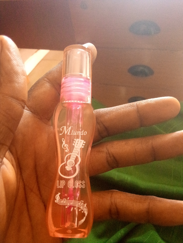 - "A dark-skinned human hand holds a transparent, peach-tinted "Mundo" brand lip gloss bottle vertically in the foreground" by FM-vzzBG2, licensed under CC BY 4.0