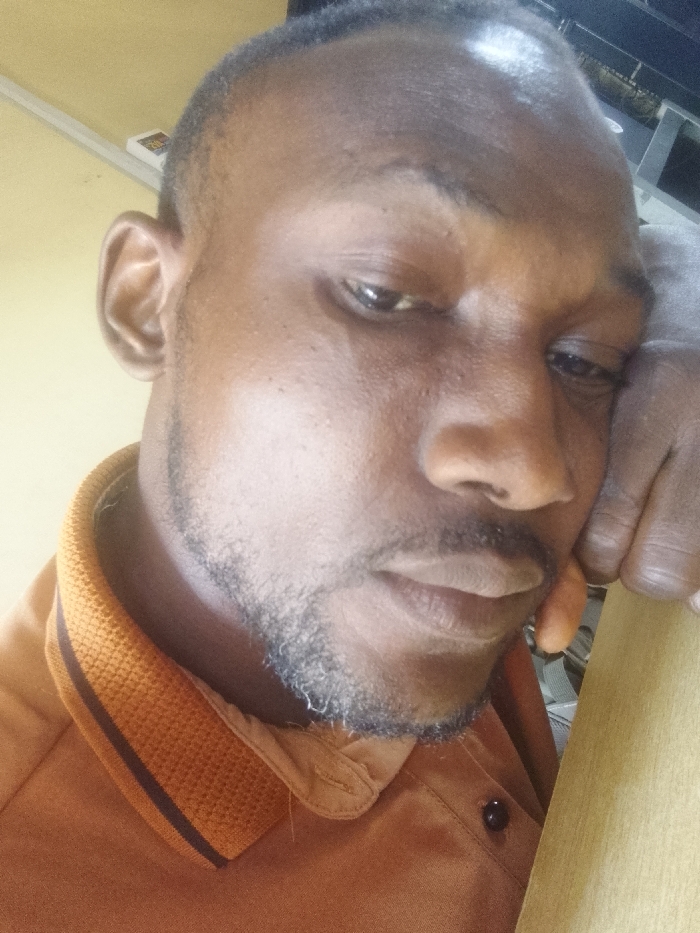 A close-up image taken in Sabon Tasha, Nigeria, features an adult male with a dark complexion, short dark hair with a fade, and a trimmed beard and mustache